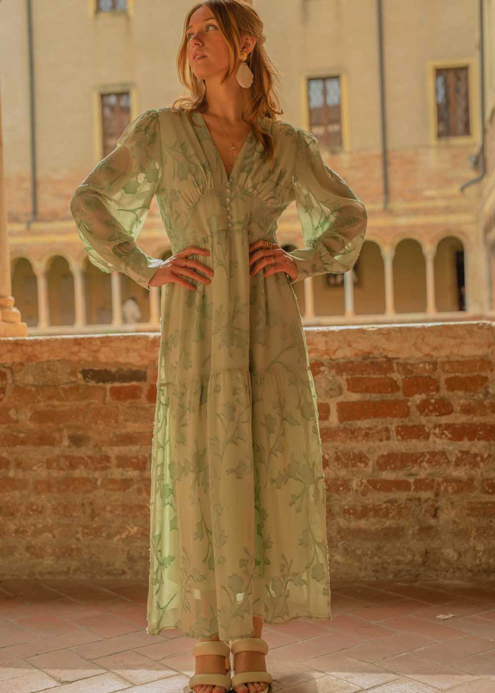 Ho visto l’ abito in una vetrina di Verona durante un week-end di vacanza; mi e’ piaciuta molto la lavorazione e ho deciso di ordinarlo!
