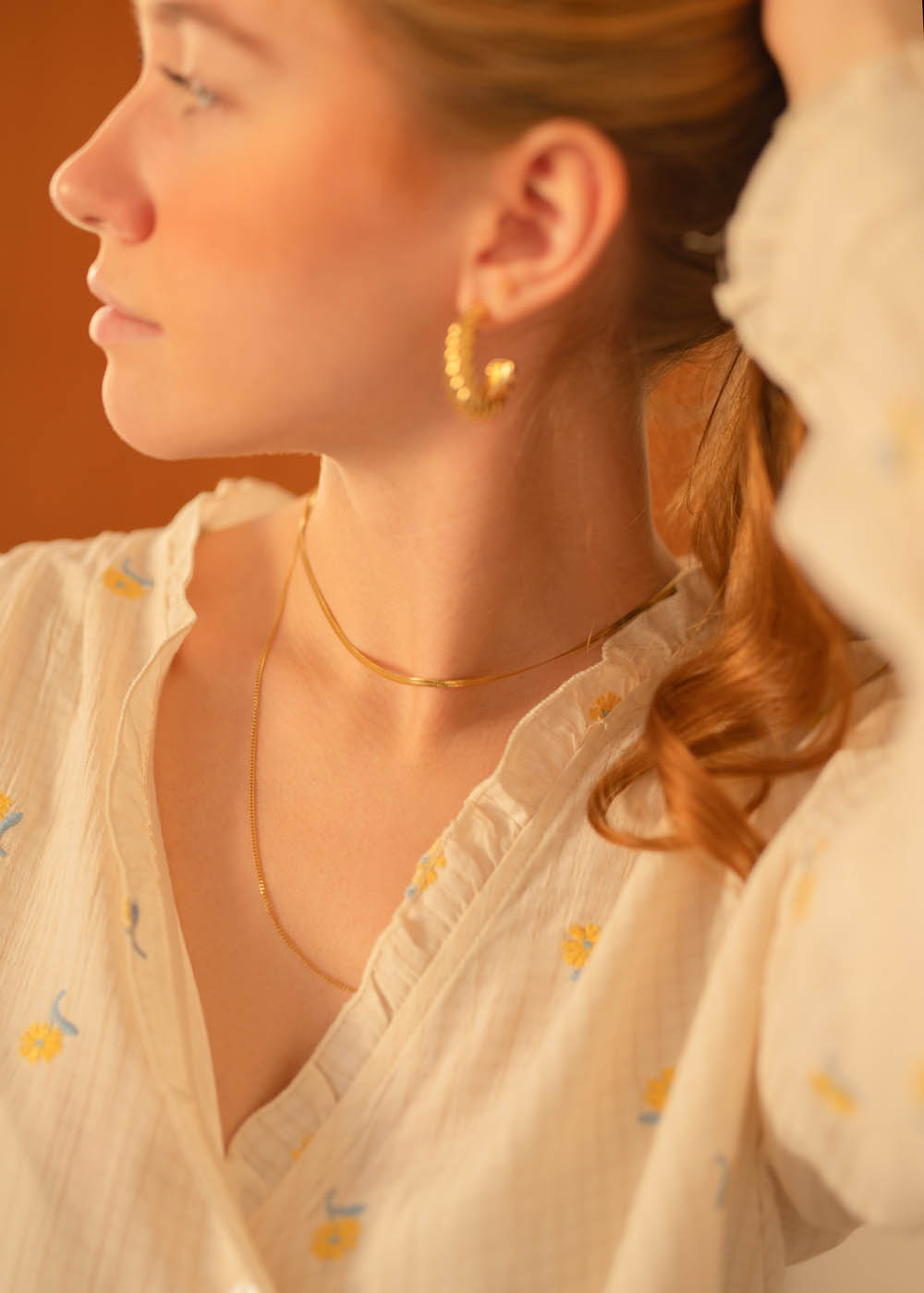 I nostri gioielli sono in acciaio rodiato inossidabile e mantengono la loro brillantezza a lungo anche a contatto con l’acqua. Indossali tutti i giorni e usali anche sotto la doccia, al mare o in piscina!