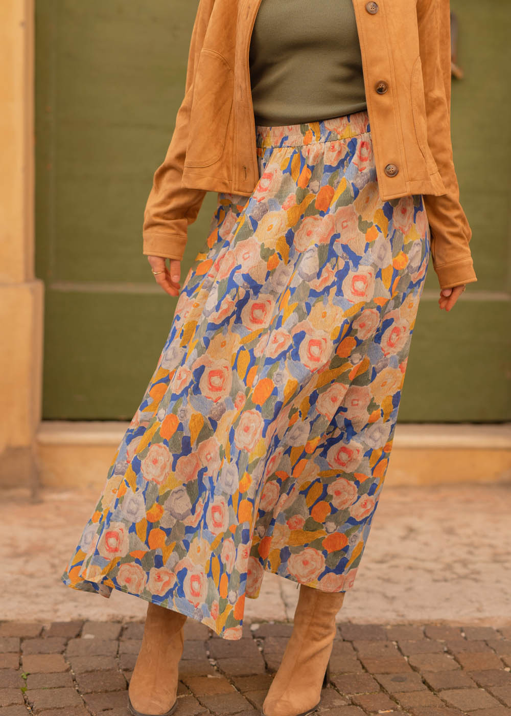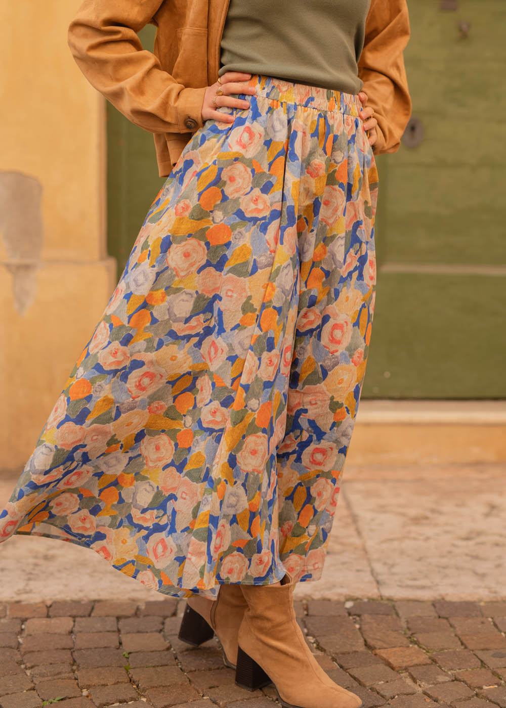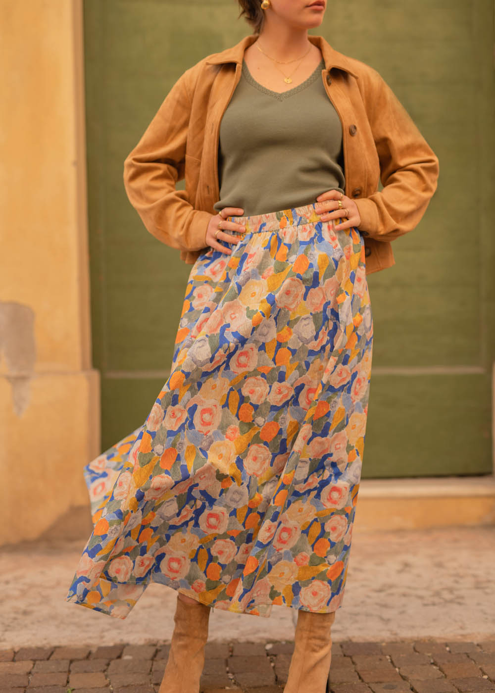- Gonna midi in tessuto leggero dalla stampa floreale vivace e contemporanea, perfetta per dare carattere anche ai look più semplici