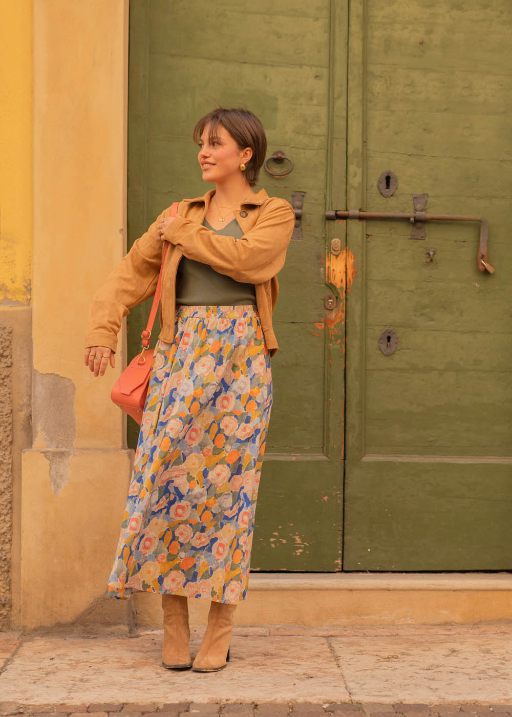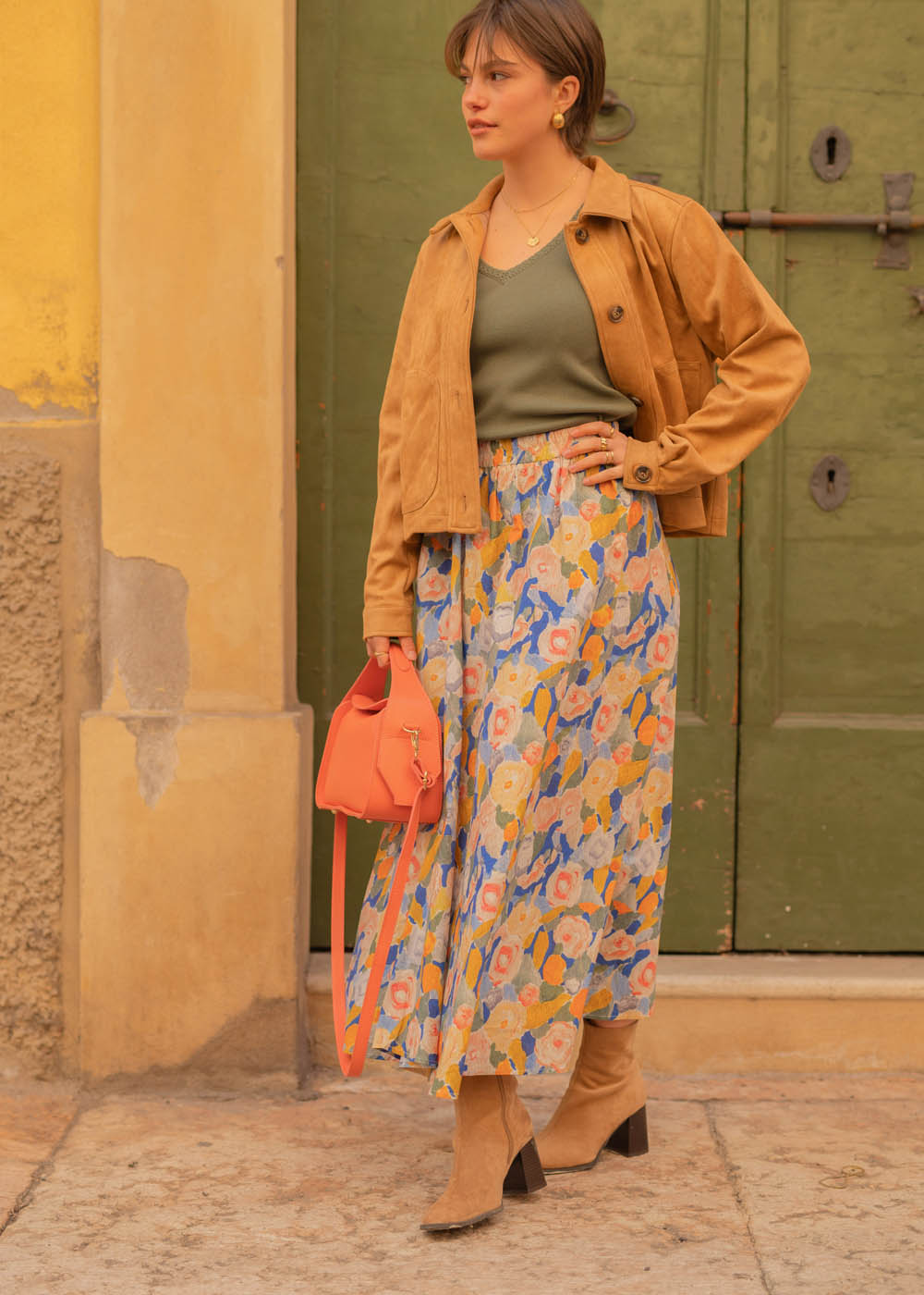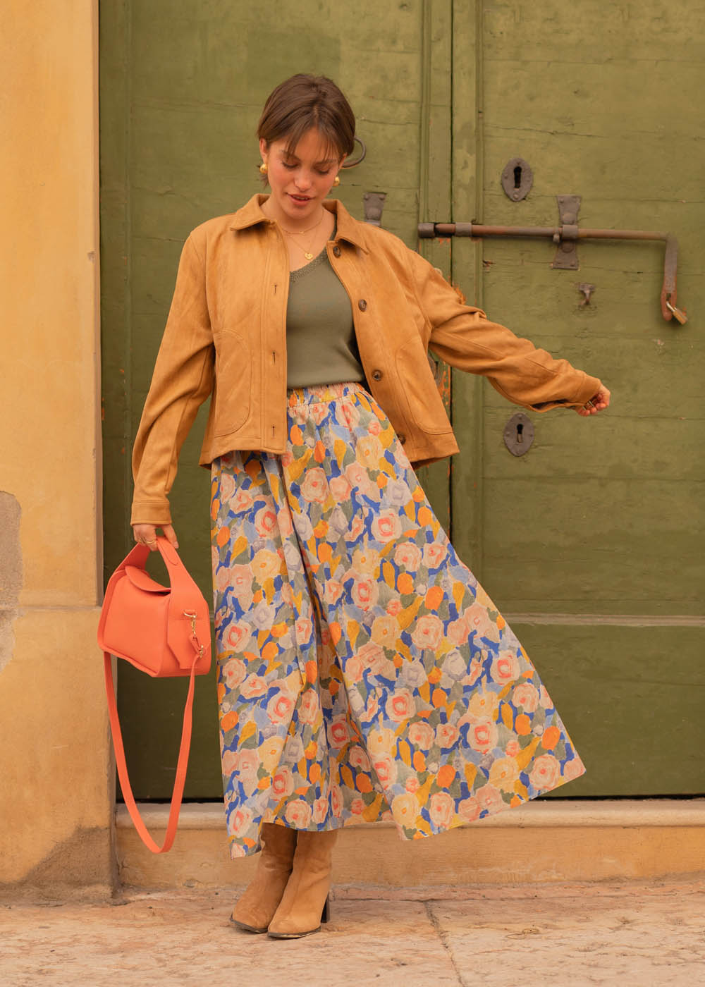 - Gonna midi in tessuto leggero dalla stampa floreale vivace e contemporanea, perfetta per dare carattere anche ai look più semplici
