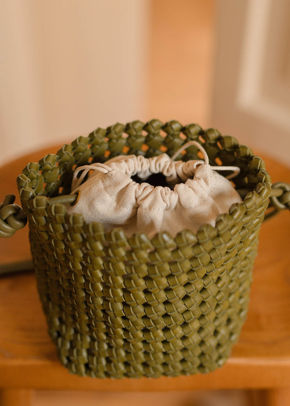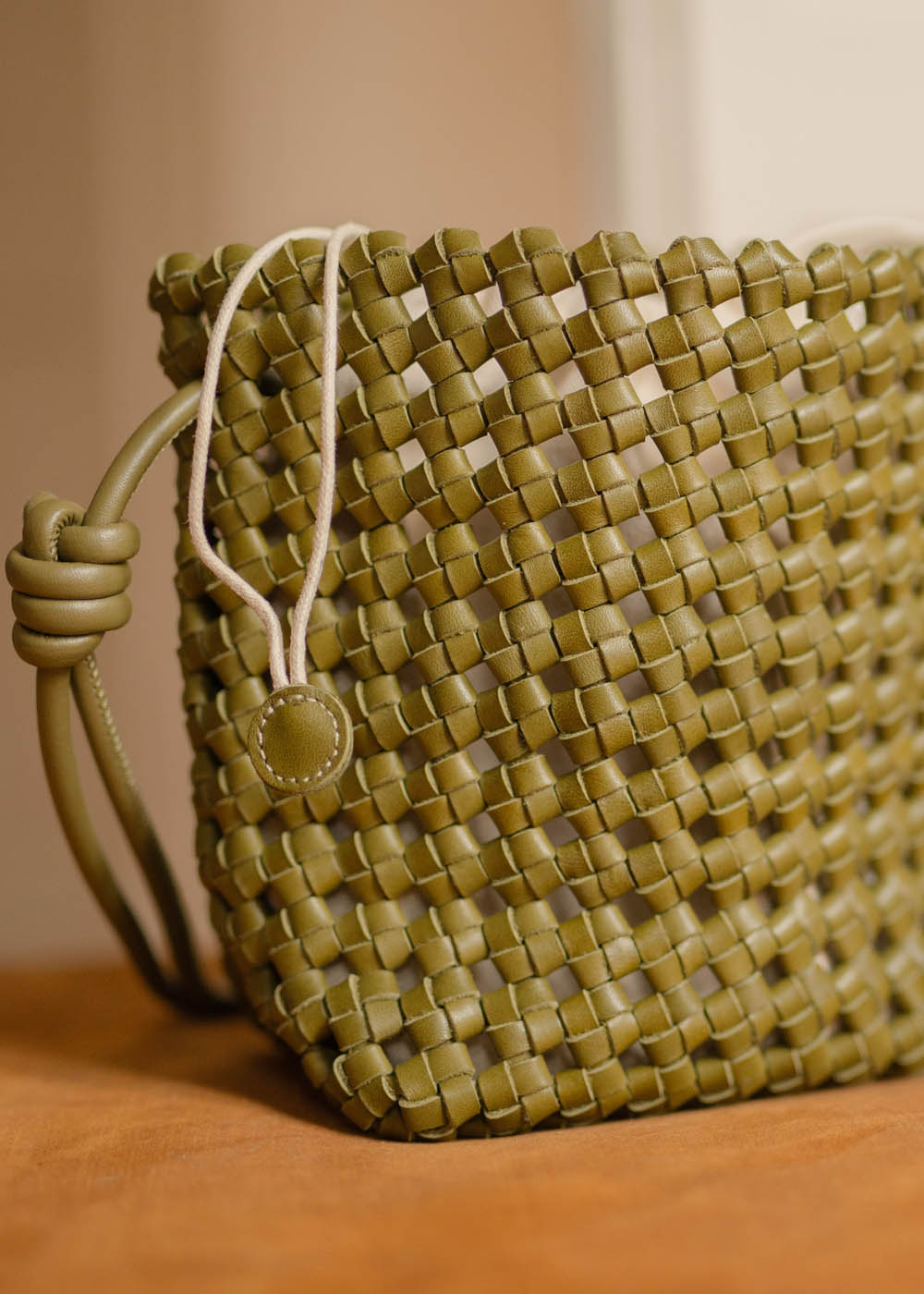 • Il manico superiore annodato aggiunge un dettaglio distintivo e contemporaneo, mentre la tonalità verde oliva dona carattere e versatilità.