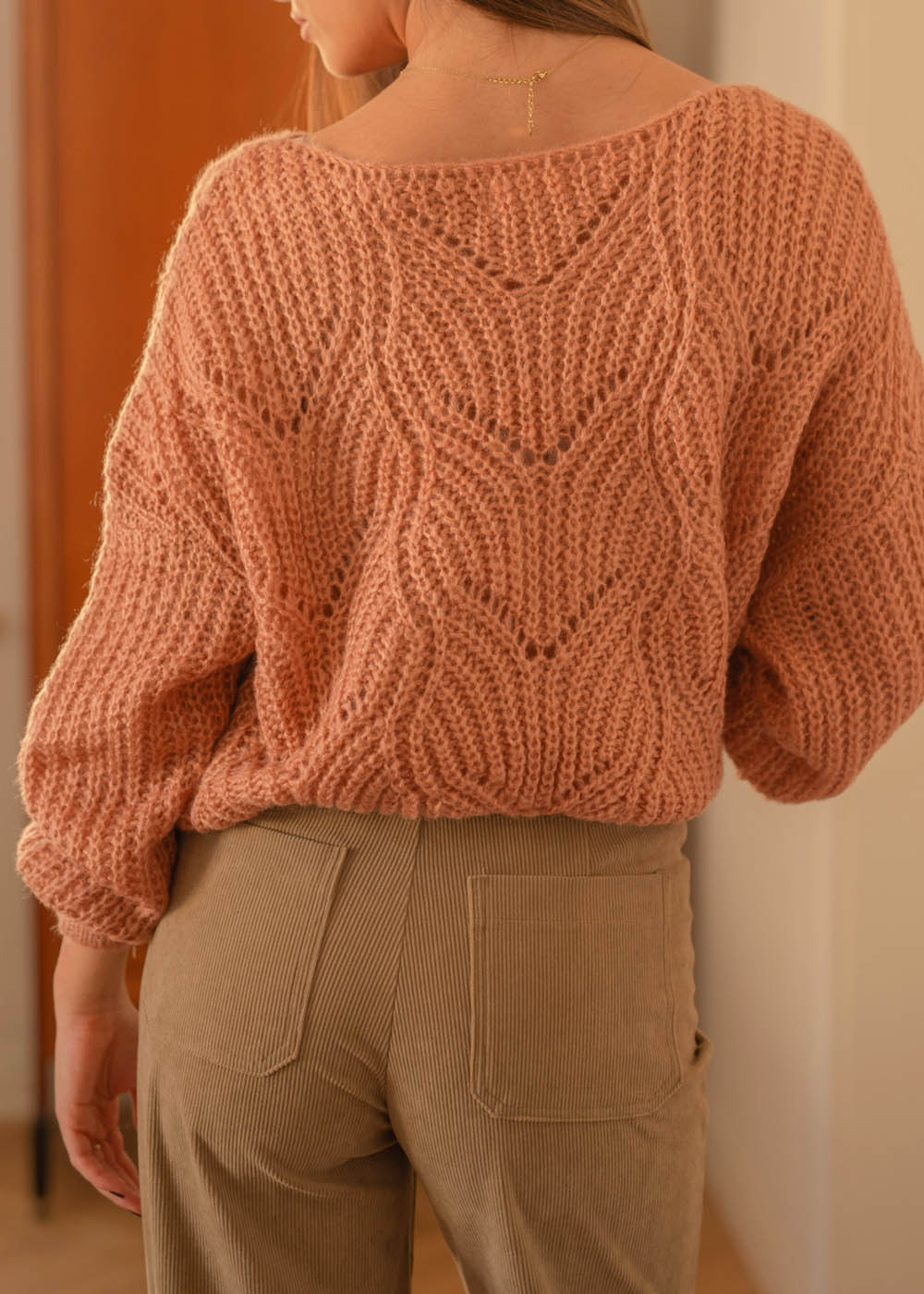 • Maglioncino con trama traforata, perfetto per la mezza stagione