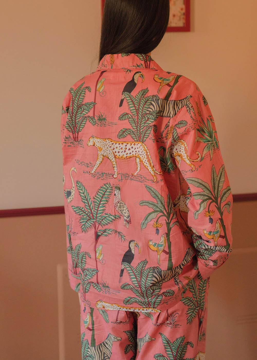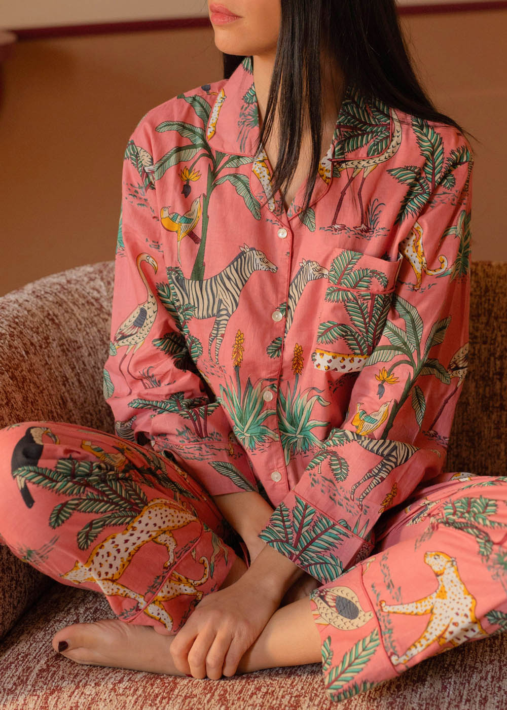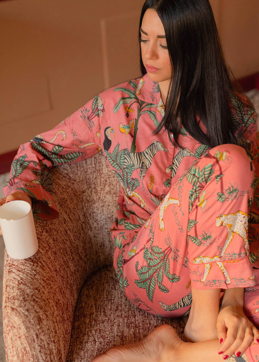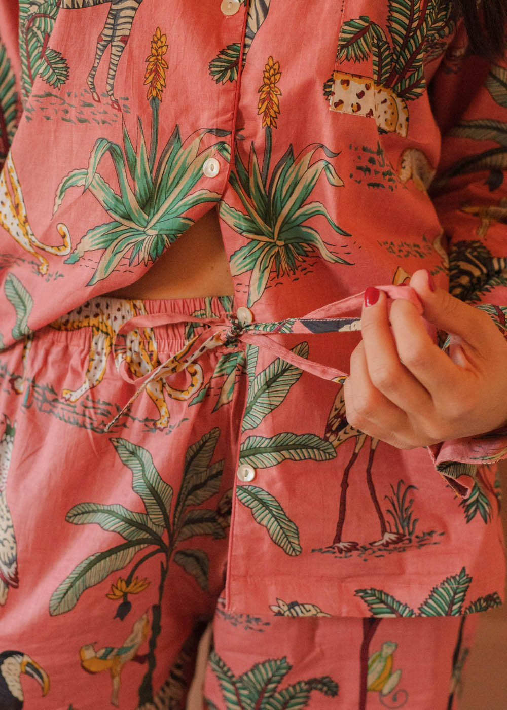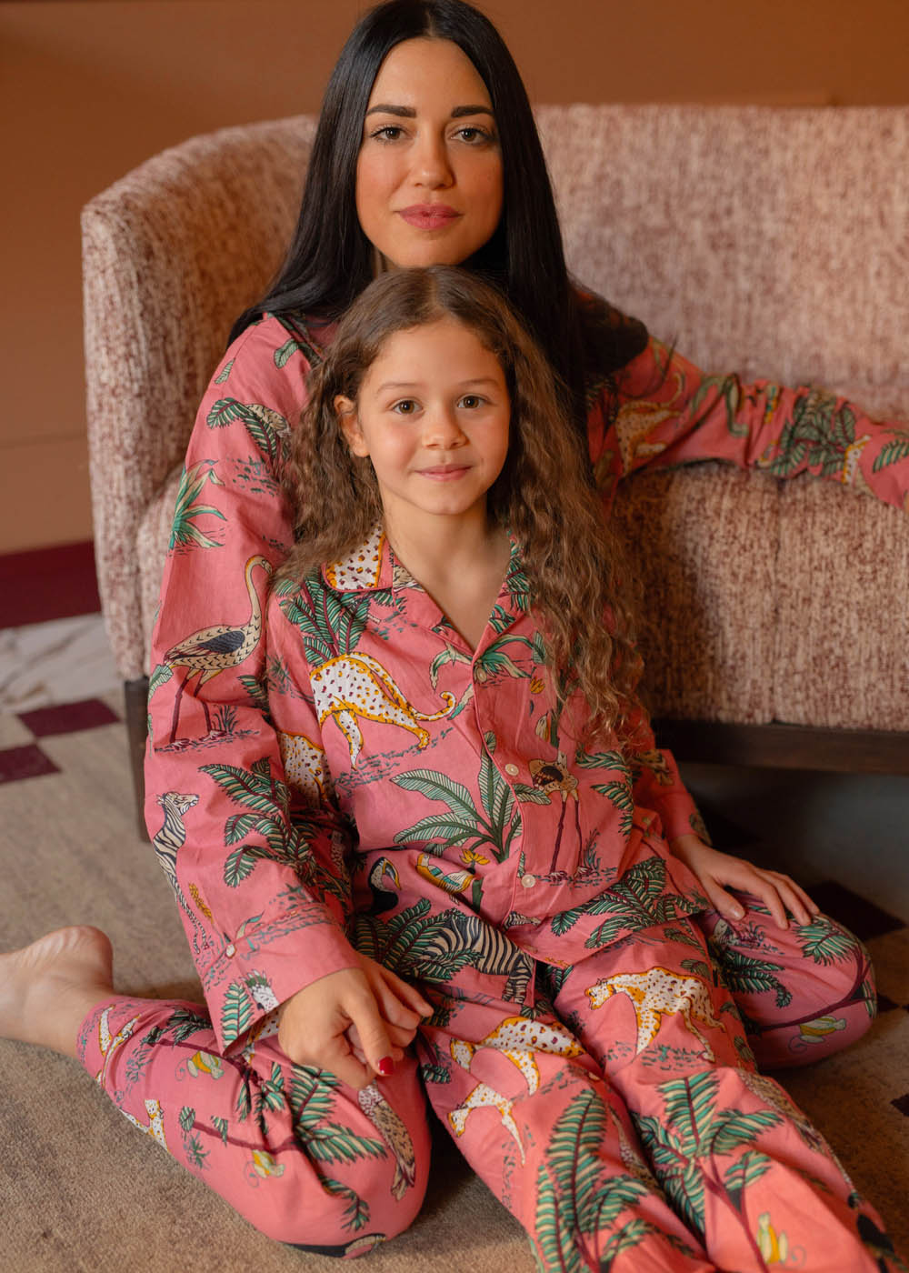 Dalla collaborazione tra Amelia & Tajama nasce una capsule di cinque fantasie esclusive di pigiami, storie pronte ad illuminare la notte. Una collezione da vivere, da donare, da custodire come un sogno.   Hai scelto la fantasia Andromeda? Scoprilo nella versione baby – matchy matchy con la mamma! Il pigiama Andromeda con la sua fantasia esotica, racconta di un tramonto lontano che avvolge tutto in una luce morbida. Le tonalità naturali e i contrasti delicati donano alla stampa un’eleganza originale, con animali e palme che si muovono su uno sfondo rosa caldo. Un pigiama in cotone che unisce comfort e carattere, pensato per chi ama distinguersi con grazia, trasformando ogni istante in un piccolo viaggio da sogno.