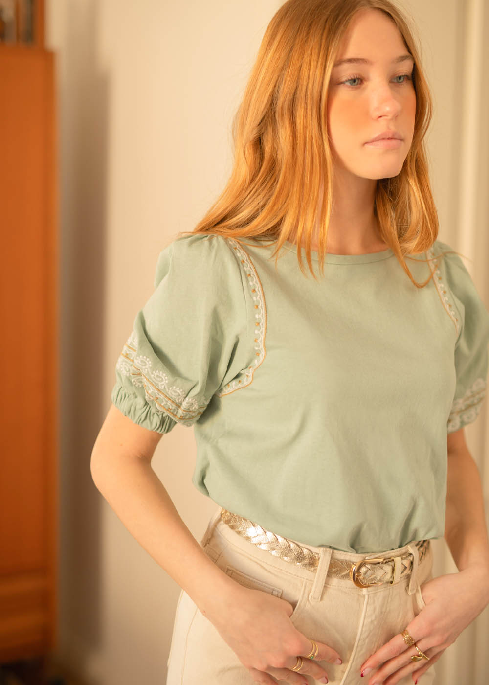 • Maglia romantica e raffinata, impreziosita da delicati dettagli ricamati sulle maniche.